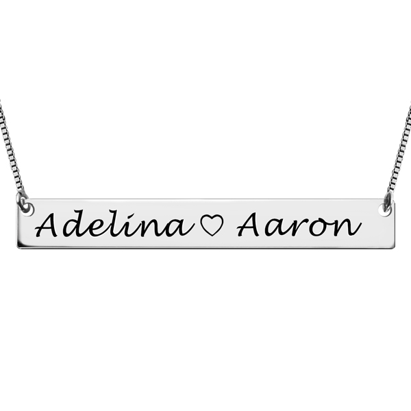 Collar con barra de plata con nombre de pareja personalizable grabado en plata de ley