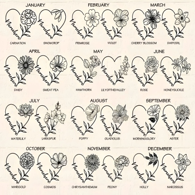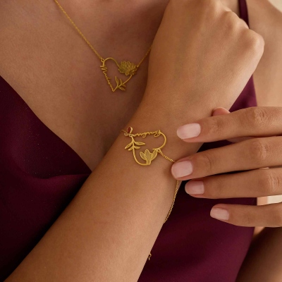 | Estilo | Pulsera personalizada con forma de corazón, flor de nacimiento y piedra de nacimiento, con nombre |