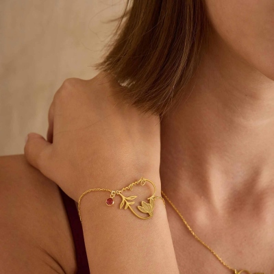 Opciones de personalización : Personaliza la pulsera añadiendo su nombre, flor de nacimiento y piedra de nacimiento. Este detalle único transforma la pieza en un recuerdo preciado que celebra momentos importantes y relaciones significativas.