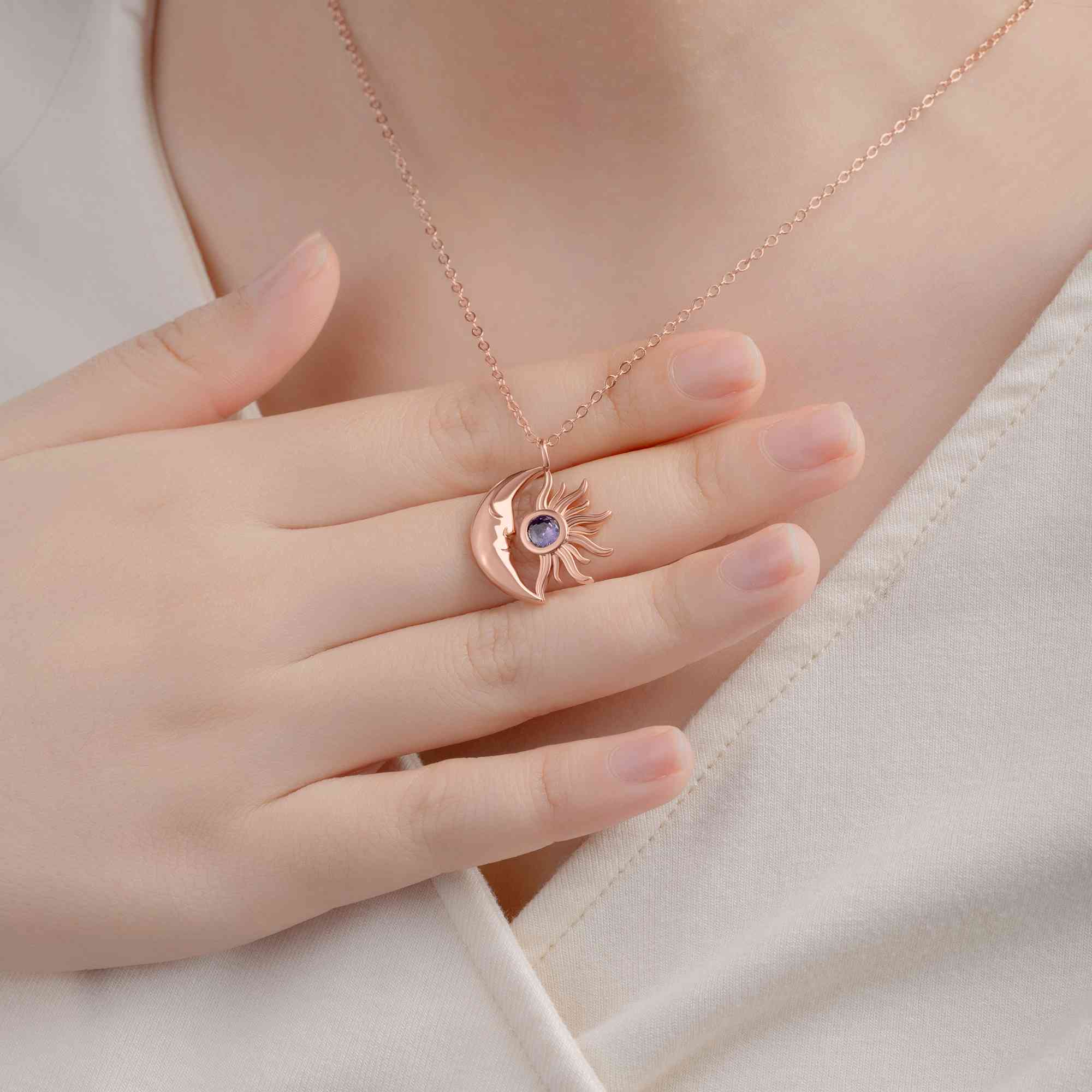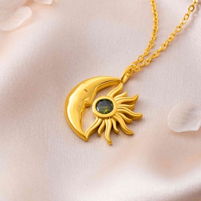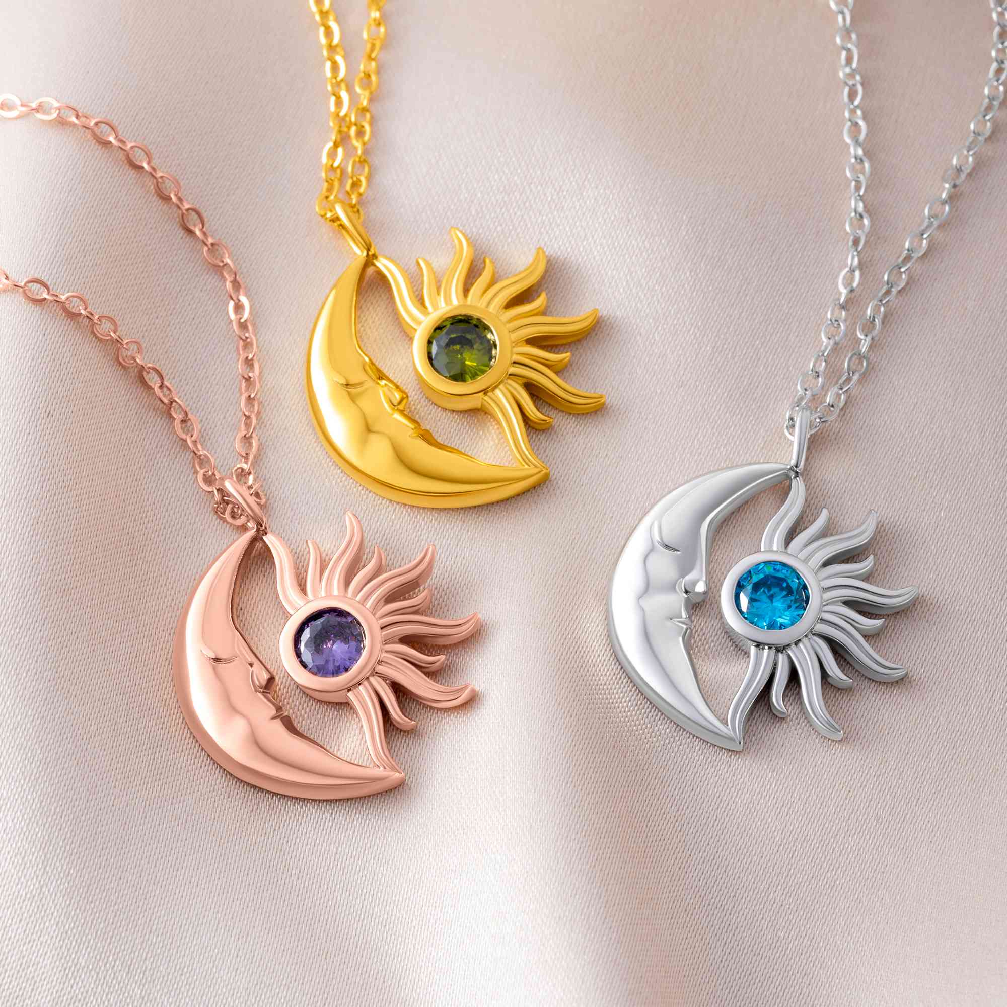 | Estilo | Collar personalizado con luna creciente y sol con piedras de nacimiento |