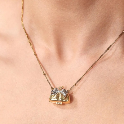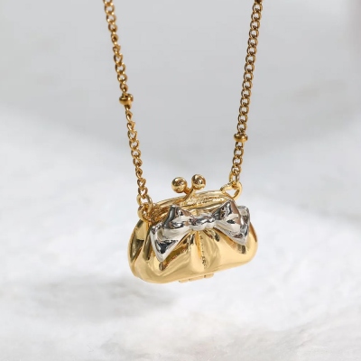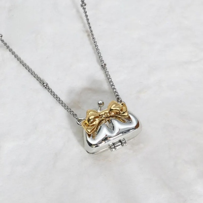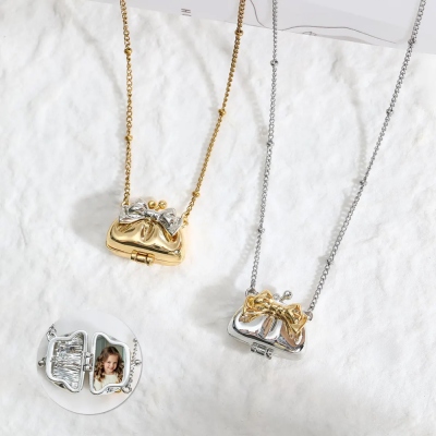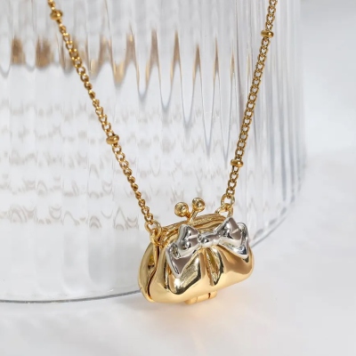 Encantador diseño de minibolso : Este delicado collar presenta un pequeño medallón con forma de bolso, con un lazo y un elegante cierre. Con un acabado elegante y pulido, el colgante evoca un clutch vintage, combinando una feminidad alegre con un estilo atemporal, perfecto para el día a día o para ocasiones especiales.