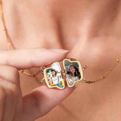 Inserto de foto personalizado : Abre el medallón para descubrir dos pequeños marcos de fotos en su interior, donde puedes colocar una o dos fotos preciadas. Las imágenes se mantienen seguras y protegidas, lo que las convierte en una forma significativa de llevar recuerdos cerca de tu corazón.