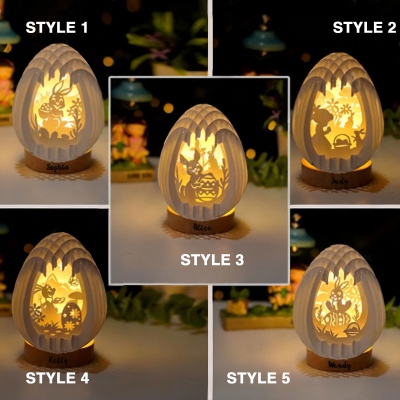 | Estilo | Lámpara de huevo de Pascua con diseño floral 3D en capas y nombre personalizado |