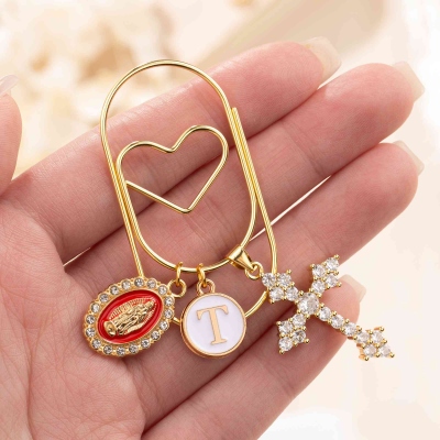 | Estilo | Clip de papel personalizado con cruz católica y dije inicial |