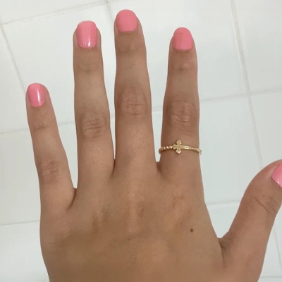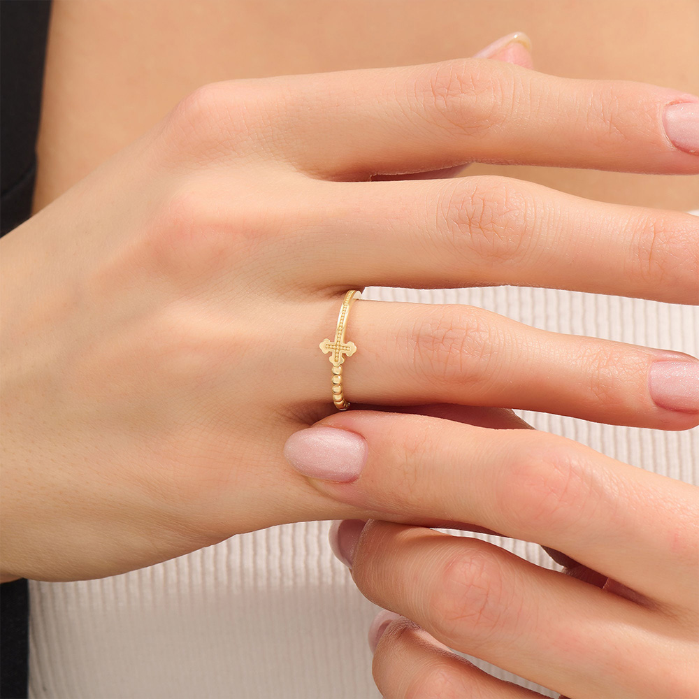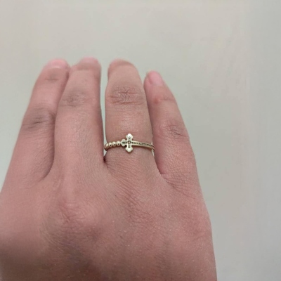 Joyería religiosa con significado : Este impresionante anillo de cruz con grabado personalizado presenta un hermoso diseño de cruz que simboliza la fe y el amor. Es un accesorio perfecto para quienes profesan convicciones religiosas.