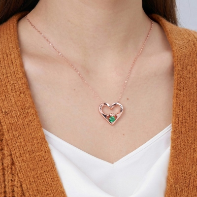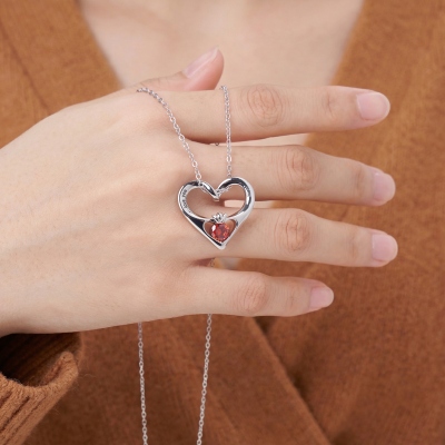Diseño conmovedor : Este collar presenta un llamativo colgante en forma de corazón, ingeniosamente elaborado a partir de dos corazones calados entrelazados. En el corazón más pequeño se encuentra una piedra natal con un adorno en forma de corona, creando una pieza que irradia elegancia atemporal y un encanto cautivador. El motivo del corazón simboliza el amor y la conexión, mientras que la piedra natal añade un toque personal, dotando a este exquisito accesorio de un significado y un atractivo únicos.
