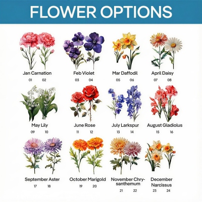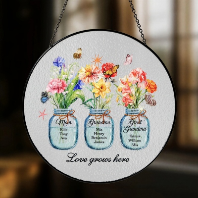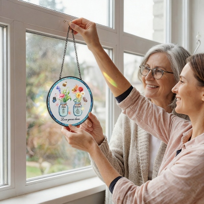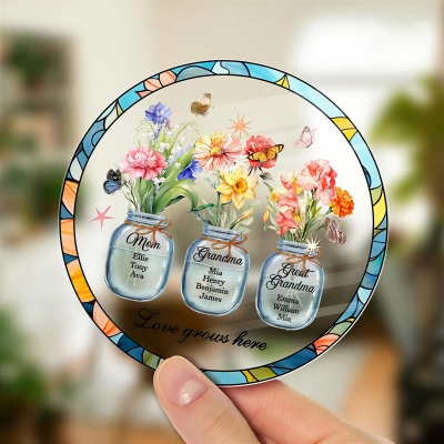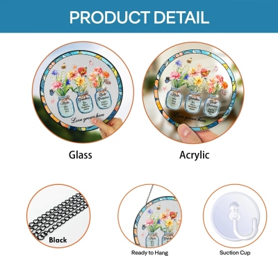 Totalmente personalizable : cada frasco se puede grabar con hasta 10 flores de nacimiento (una por miembro de la familia) y hasta 10 nombres debajo, perfecto para honrar a mamá, la abuela y la bisabuela con sus símbolos florales únicos y los nombres de sus seres queridos.