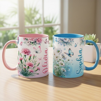 | Estilo | Taza personalizada multicolor con flores de nacimiento y mariposas con nombre |