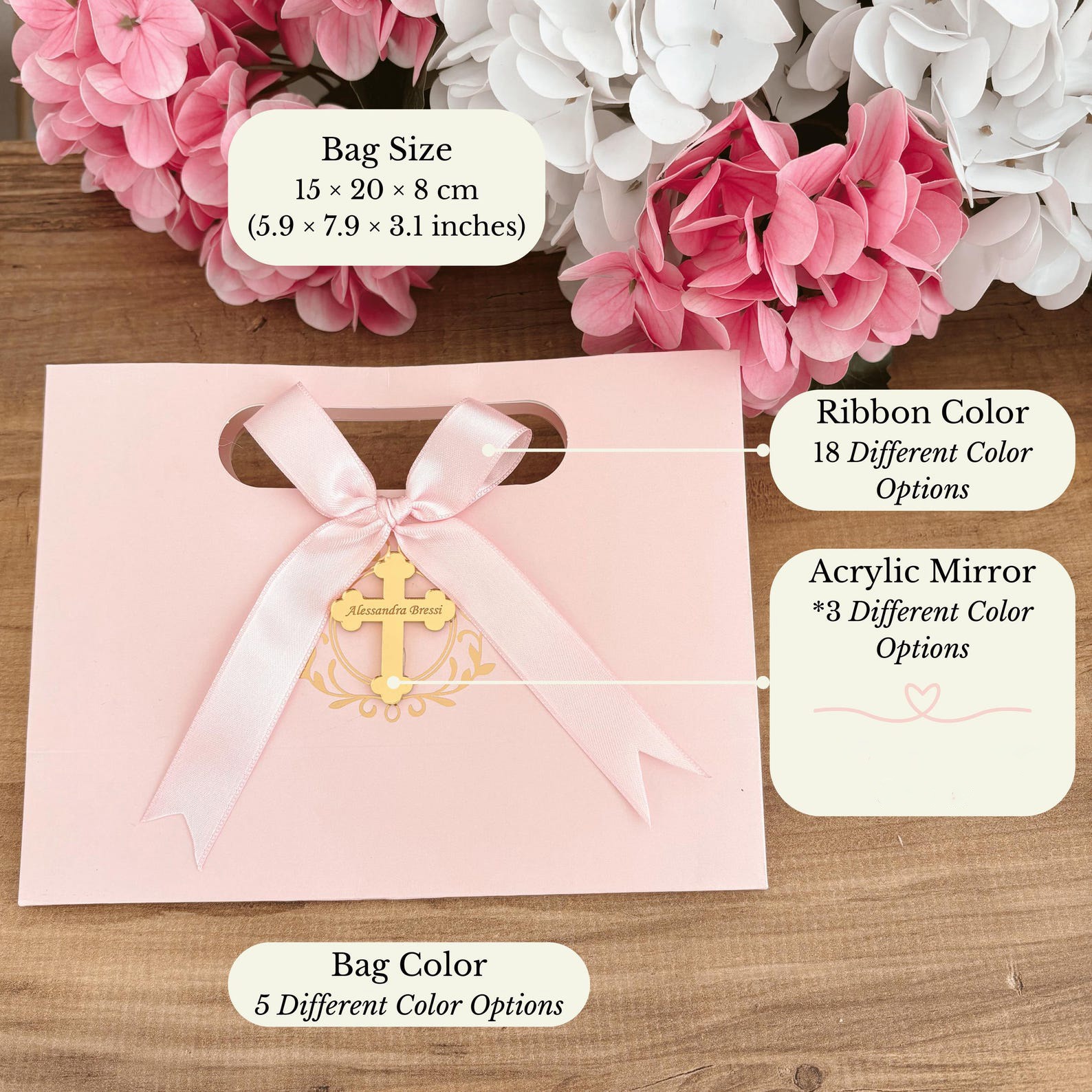 Ideales para usar en bautizos, primeras comuniones, bautizos o ceremonias de confirmación, estas bolsas de regalo personalizadas sirven como recuerdos memorables para los invitados.