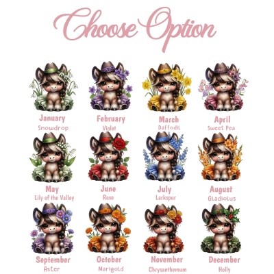 | Estilo | Manta de caballo vaquera de dibujos animados con nombre personalizado y flor de nacimiento |