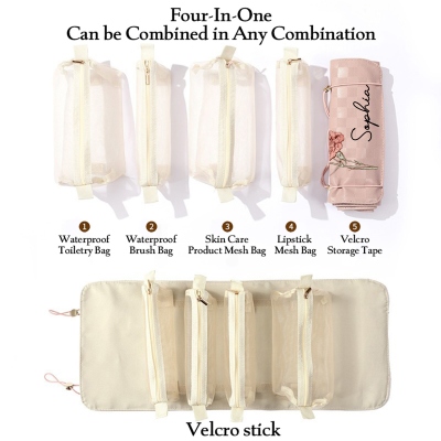 Diseño plegable : Este neceser plegable 4 en 1 cuenta con un práctico diseño enrollable y 4 bolsillos de malla, que mantienen todos tus productos esenciales perfectamente organizados tanto en casa como de viaje. Su gancho para colgar permite un fácil acceso y un uso cómodo en cualquier lugar, mientras que el elegante estampado floral añade un toque delicado y femenino a tu rutina.