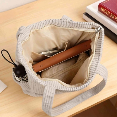 Pana resistente : Confeccionada con una pana suave pero robusta, esta bolsa ofrece una sensación cómoda y una larga vida útil. El cierre de cremallera seguro mantiene tus pertenencias a salvo, mientras que los bolsillos exteriores facilitan la organización. Disponible en varios colores, combina fácilmente con diferentes estilos personales.