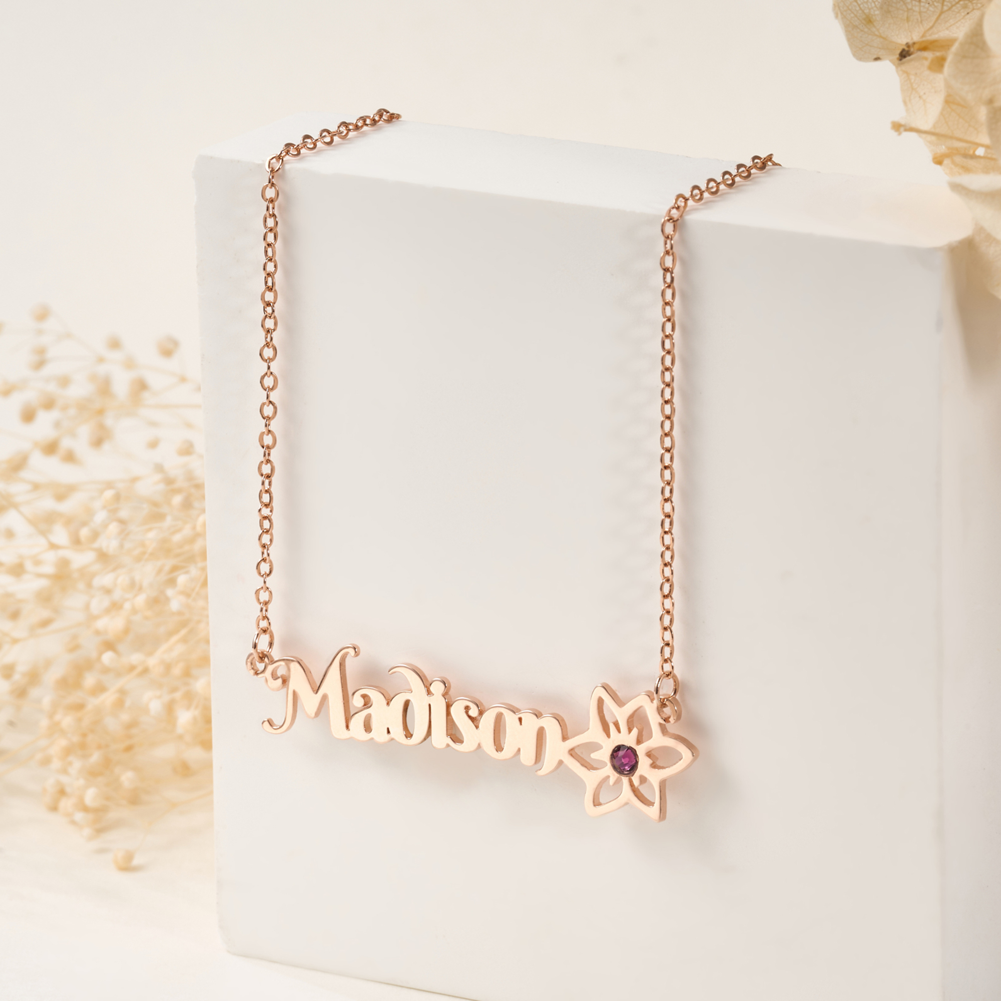 | Estilo | Collar personalizado con nombre, flor de nacimiento y piedra de nacimiento |