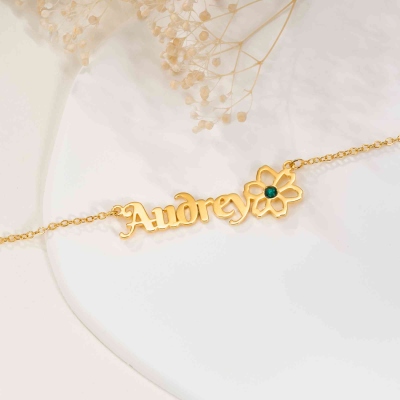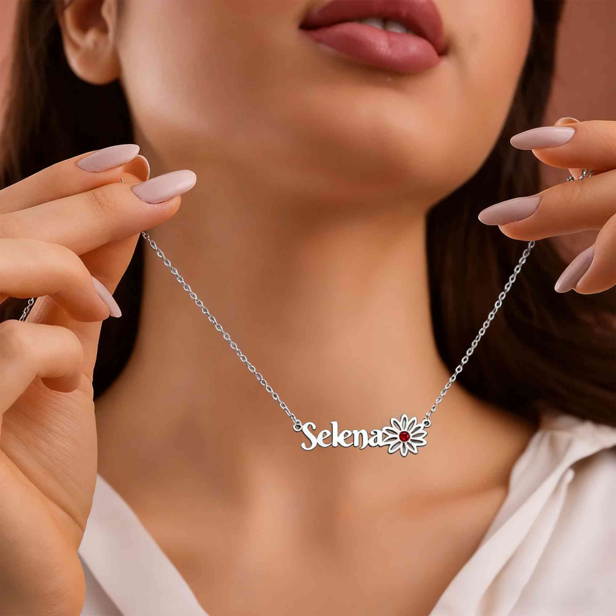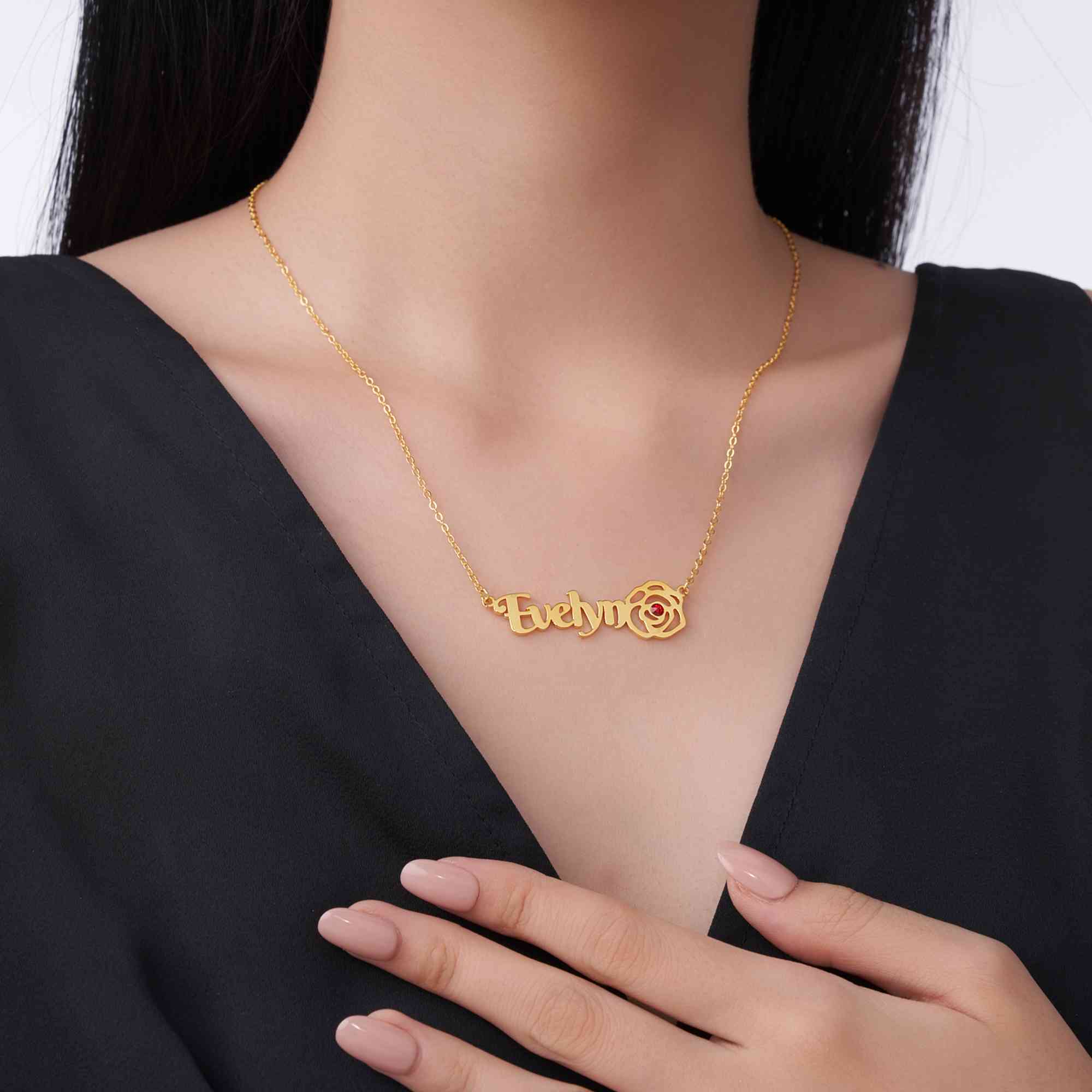 Diseño elegante : Este collar personalizado con nombre presenta un delicado colgante grabado con el nombre elegido, junto a un diseño de flor de nacimiento con piedra natal en el centro, que simboliza belleza, crecimiento e individualidad. Su estilo delicado añade un toque suave y femenino que complementa tanto atuendos cotidianos como ocasiones especiales.