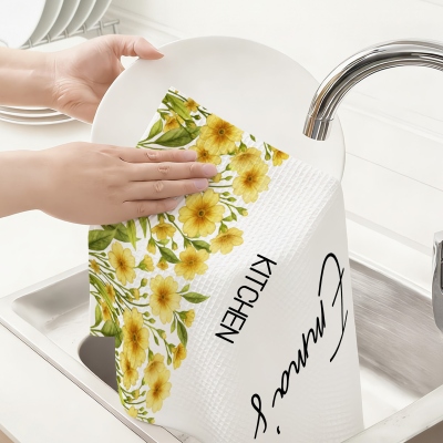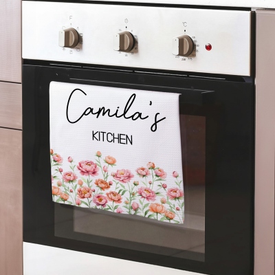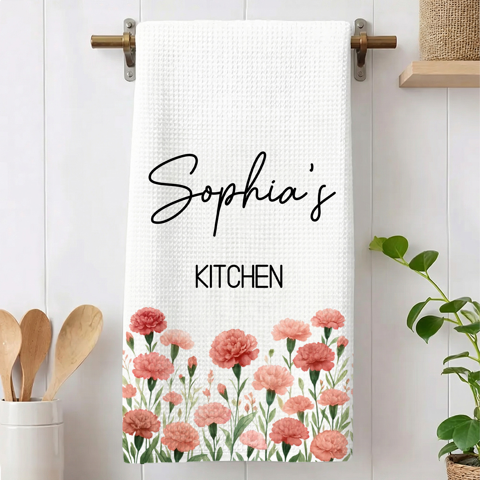 | Estilo | Toalla de cocina con diseño de gofre y nombre personalizado, flor de nacimiento. |