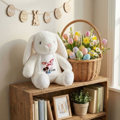 Nombre e inicial personalizados : El conejito se puede personalizar con el nombre del niño y su inicial del alfabeto, convirtiéndolo en un recuerdo único. Este detalle personal ayuda a los niños a sentir una conexión especial y crea un regalo memorable para bebés o niños pequeños.