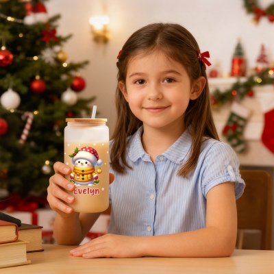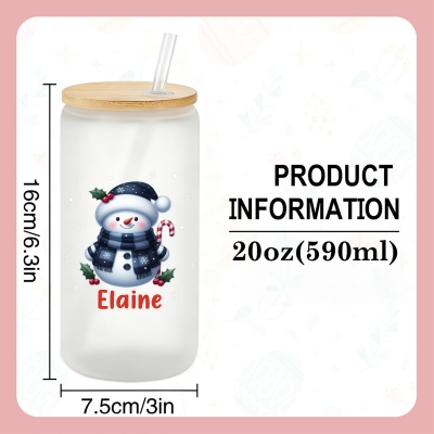 | Estilo | Vaso de vidrio esmerilado con diseño de muñeco de nieve de dibujos animados y nombre personalizado |