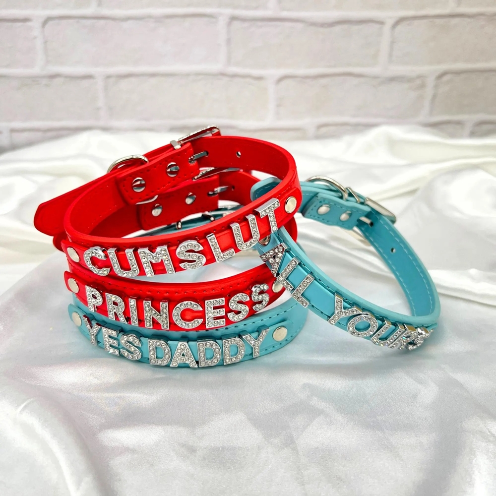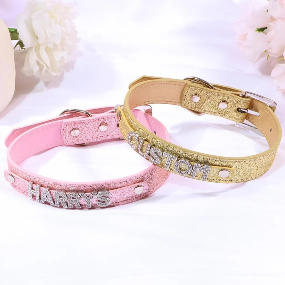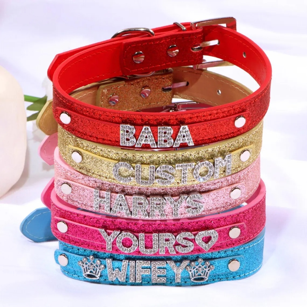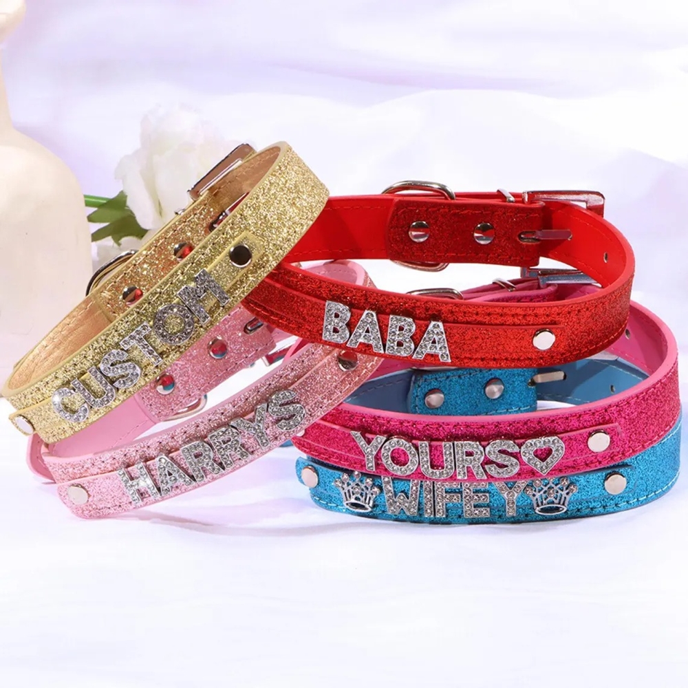 Cuero con acabado de diamantes de imitación : elaborado con cuero PU suave y letras de diamantes de imitación brillantes, este collar ajustable ofrece un ajuste cómodo al tiempo que brinda un brillo llamativo en tonos clásicos.
