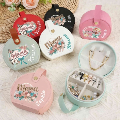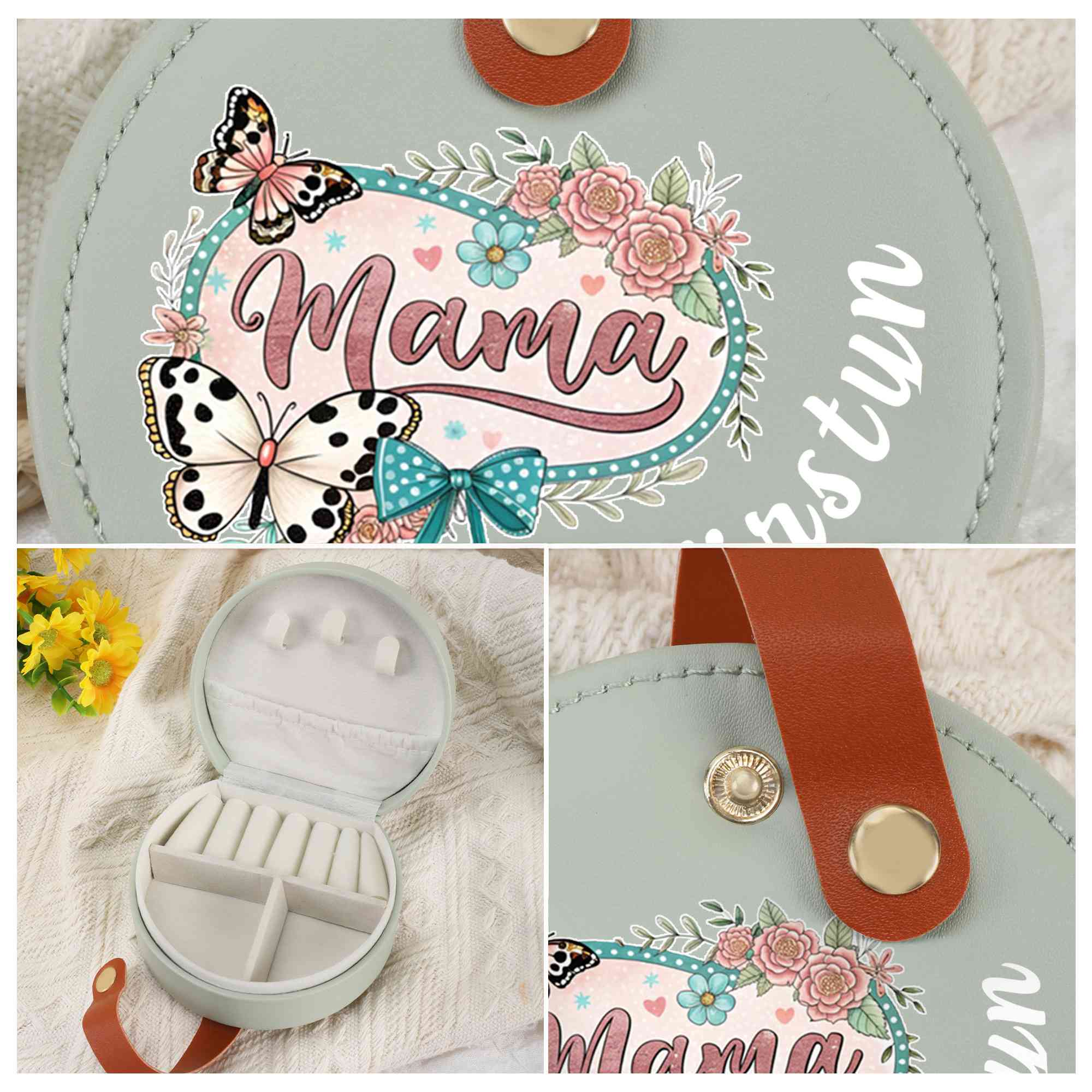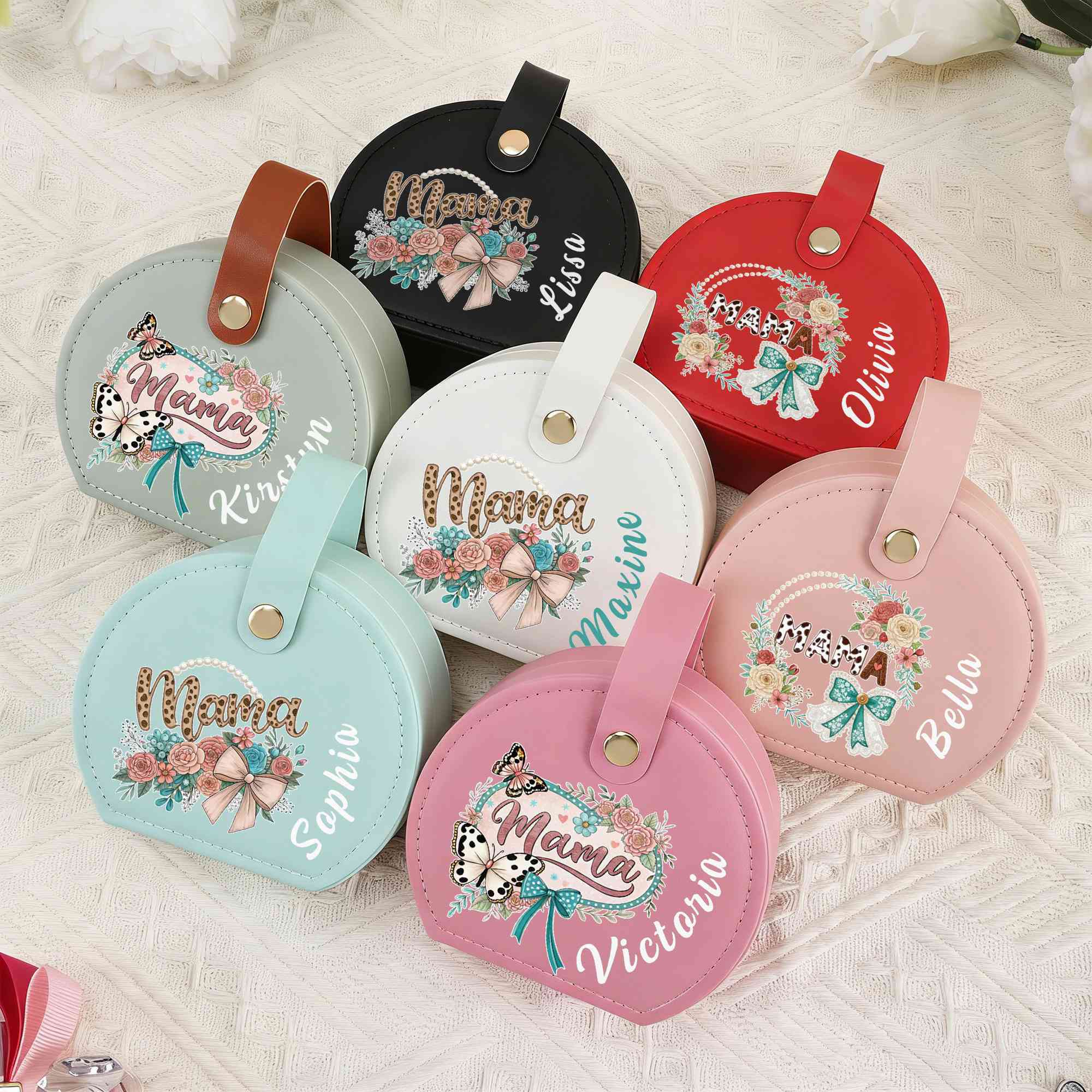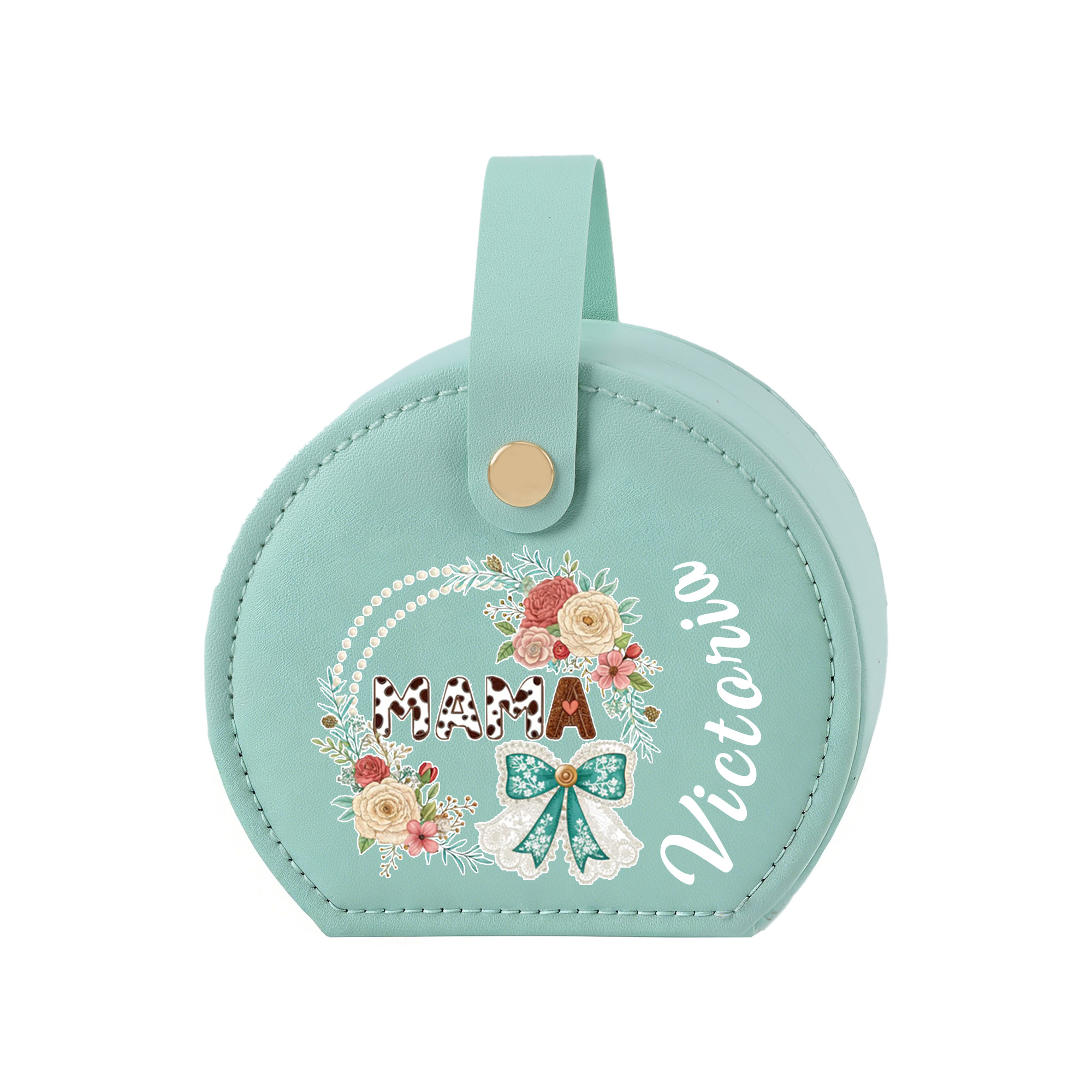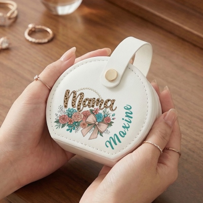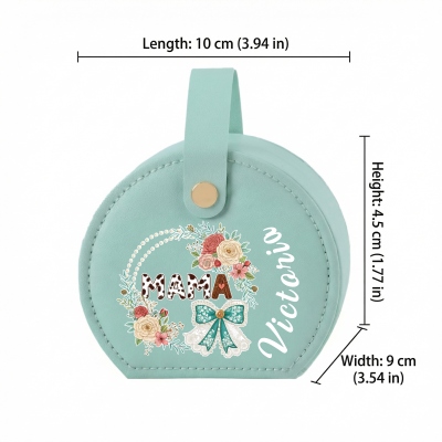 | Estilo | Estuche portátil para joyas con asa, diseño de lazo floral personalizado para mamá. |