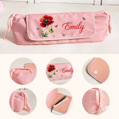 Toque personalizado : Esta bolsa de almacenamiento se puede personalizar con un nombre y una flor de nacimiento con gemas a juego, añadiendo un toque único y moderno a tus artículos de belleza esenciales. Aporta un toque de individualidad a tu rutina de cuidado capilar y mantiene tus herramientas de peinado ordenadas.