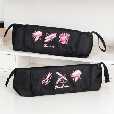 Nombre personalizado : La bolsa de almacenamiento se puede personalizar con un nombre, dándole un toque personal que destaca. Este detalle convierte un práctico accesorio para el cuidado del cabello en un artículo con estilo para el día a día o para viajar.