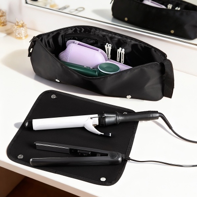 Material impermeable y duradero : Fabricada con tela impermeable de alta calidad, esta bolsa de almacenamiento protege tus herramientas para el cabello de la humedad y los derrames. Su acabado suave es fácil de limpiar y está diseñada para el uso diario, tanto para rutinas ajetreadas como para viajes frecuentes.