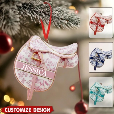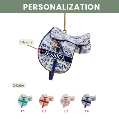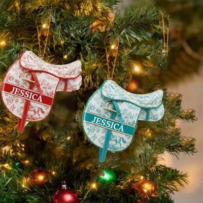 | Estilo | Adorno navideño de Toile de Jouy con silla de montar de caballo y nombre personalizado |