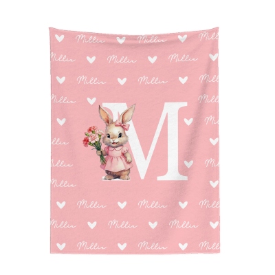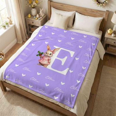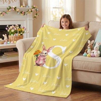 Diseño de Conejito de Acuarela : Esta manta de conejito de Pascua presenta un suave conejo de acuarela combinado con la flor de nacimiento, el nombre y la inicial de tu hijo. Los delicados detalles florales y el alfabeto crean un dulce aire de cuento de hadas. Su estilo ligero y fresco se adapta a la perfección a la habitación de un bebé, un dormitorio o un acogedor rincón de lectura, añadiendo un toque cálido y festivo para la Pascua.