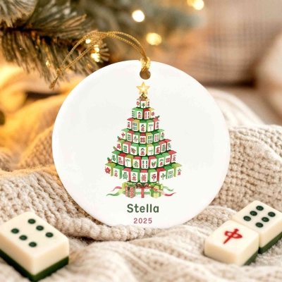 Recuerdo personalizado : Añade tu nombre y el año para crear un adorno único que celebre tu pasión por el Mahjong. Cada pieza se personaliza cuidadosamente para reflejar tu estilo único o conmemorar una época especial de las fiestas, convirtiéndose en un detalle significativo para tu decoración navideña.