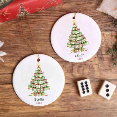 | Estilo | Adorno navideño personalizado de Mahjong con nombre y año |