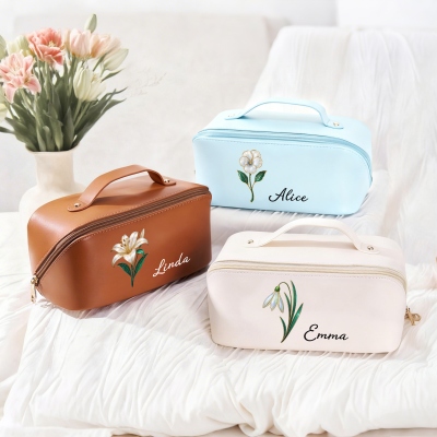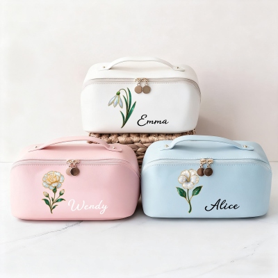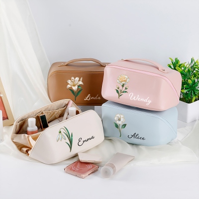 Toque personalizado : añade un nombre personalizado y una flor de nacimiento a juego para crear un neceser único. El toque personalizado convierte este imprescindible de viaje en algo especial y considerado. Refleja su individualidad y combina a la perfección con el diseño de la flor de nacimiento, creando un recuerdo especial que usará a diario.