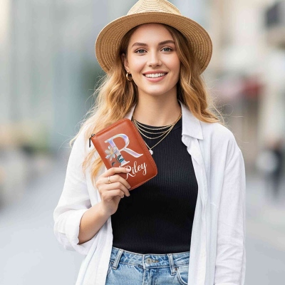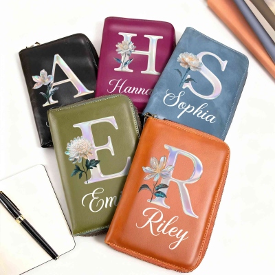 Elegante diseño de nácar : este portafolios de viaje presenta una refinada inicial de nácar combinada con una delicada flor de nacimiento, lo que crea un estilo suave y femenino que se siente moderno y atemporal.