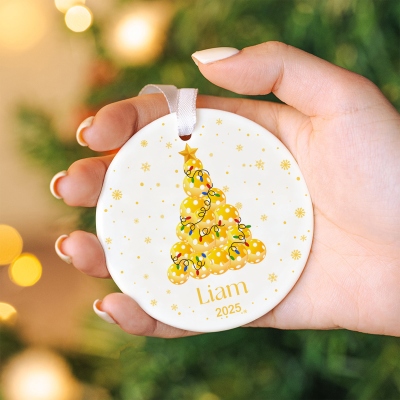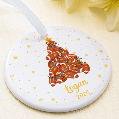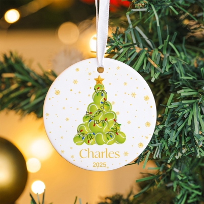 | Estilo | Adorno navideño de cerámica apilada con pelotas deportivas personalizadas con nombre y año |