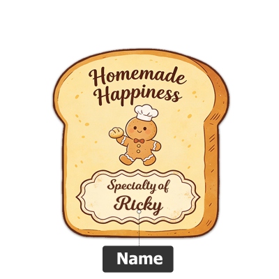 Diseño de tostada personalizada : con forma de una simpática rebanada de pan tostado, este diseño combina a la perfección con la temática de la repostería. Su aspecto cálido y divertido crea un ambiente acogedor y relajado, mientras que la opción de añadir un nombre personalizado fusiona el estilo personal con un toque divertido inspirado en la panadería.