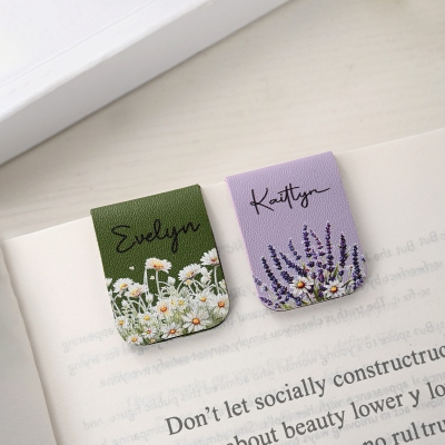 Diseño floral : este marcador de cuero magnético muestra delicadas flores silvestres en un estilo de acuarela suave, ofreciendo un acento elegante y significativo para los lectores que aman los detalles finos y la belleza clásica.