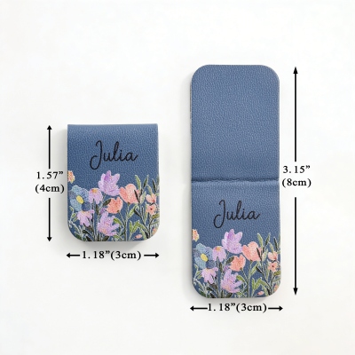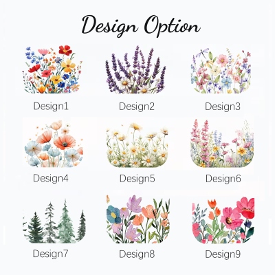 | Estilo | Marcador de cuero con nombre personalizado y diseño de flores silvestres de acuarela |