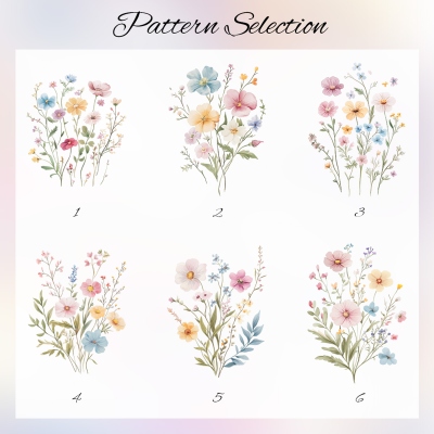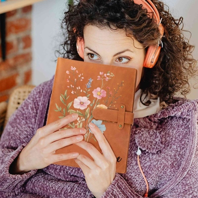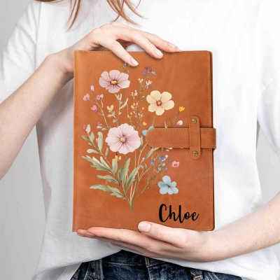 | Estilo | Cuaderno y funda de cuero con flores silvestres y nombre personalizado |