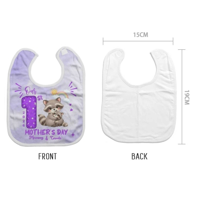 Diseño de Mamá y Bebé Animal : este babero presenta una tierna ilustración de una mamá animal y su bebé, junto con un año personalizado, que simboliza un vínculo afectuoso y celebra el primer Día de la Madre con un estilo cálido y divertido.