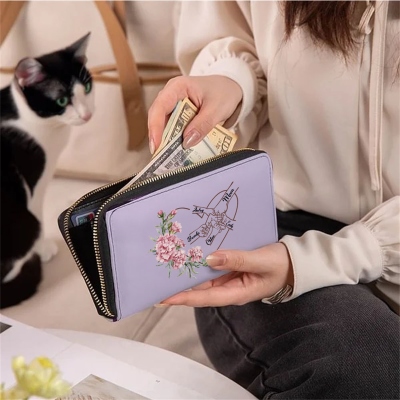 Cuero de primera calidad : Fabricada en cuero resistente con un suave cierre de cremallera, esta cartera ofrece un tacto suave y una calidad duradera. El interior incluye múltiples ranuras para tarjetas, compartimentos para efectivo y un bolsillo seguro con cremallera para monedas. Su práctica correa de muñeca permite llevarla fácilmente durante todo el día.