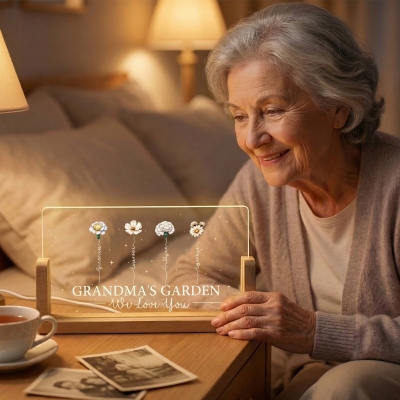 Personalización : Cada flor se puede combinar con un nombre personalizado y la flor correspondiente a su mes de nacimiento, convirtiendo la lámpara en un significativo adorno familiar. Los detalles personalizados resaltan a cada ser querido en la vida de la abuela o la madre, creando un recuerdo entrañable y único.