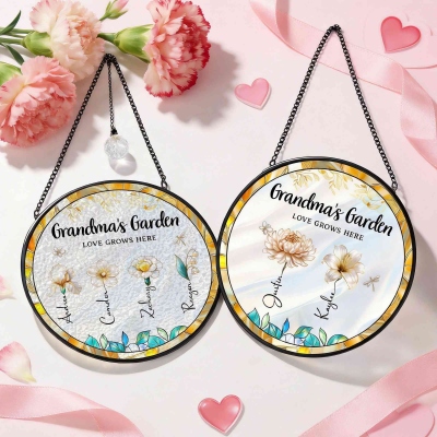 Diseño Floración Familiar : Inspirado en la flor única que representa cada mes de nacimiento con un nombre personalizado, como las flores del jardín de una abuela cariñosa, simboliza la conexión y el cariño familiar. Cuando la luz del sol la atraviesa, los pétalos detallados se ven vívidos y llenos de vida, convirtiendo la pieza en un hermoso espectáculo de luz que aporta gracia y encanto a la decoración de su hogar.