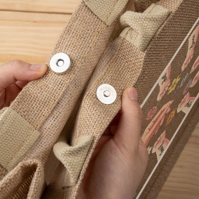 Yute natural duradero : Fabricado con resistente tela de yute, este bolso ofrece un estilo natural y rústico que combina a la perfección con atuendos informales. Sus asas resistentes y costuras reforzadas facilitan el uso diario, mientras que su gran capacidad permite guardar fácilmente comestibles, libros o artículos esenciales de uso diario.