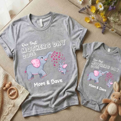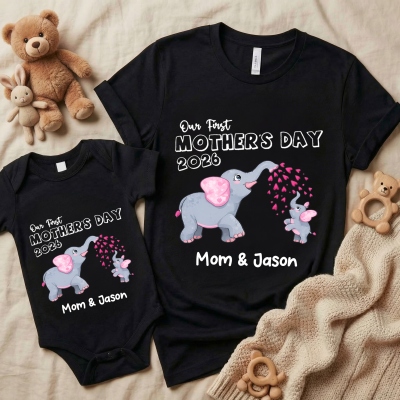 Nombres personalizados : Tanto la camiseta para mamá como el body para bebé se pueden personalizar con nombres, añadiendo un toque único y personal. El nombre impreso con claridad convierte el conjunto en un recuerdo entrañable para celebrar el primer Día de la Madre del bebé.