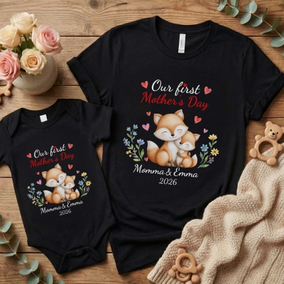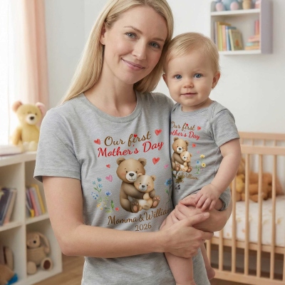Nombre y año personalizados : La camiseta para mamá y el body para bebé permiten personalizarlos con el nombre y el año elegido. Estos detalles personalizados añaden un valor sentimental y convierten el conjunto en un recuerdo entrañable que celebra el primer Día de la Madre.