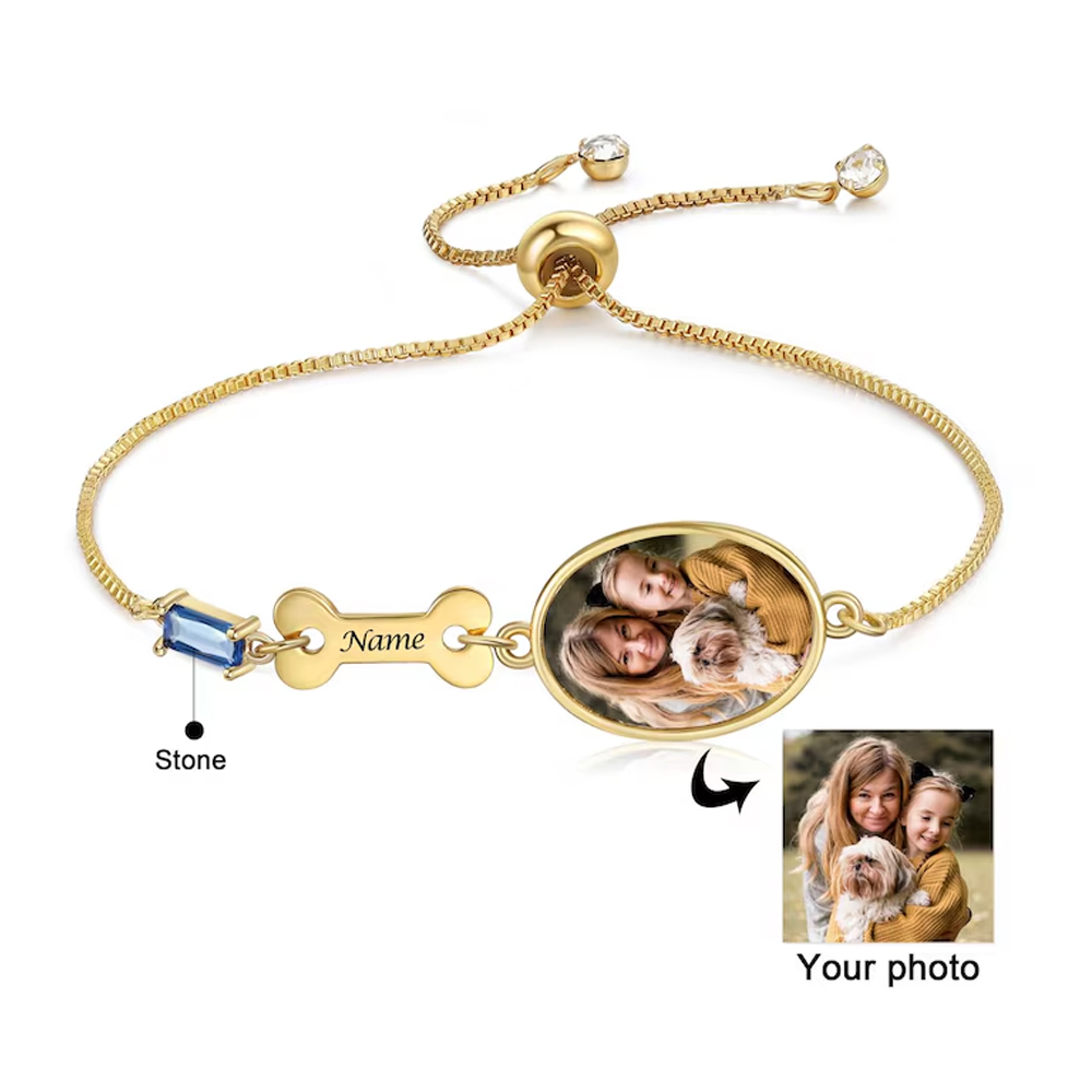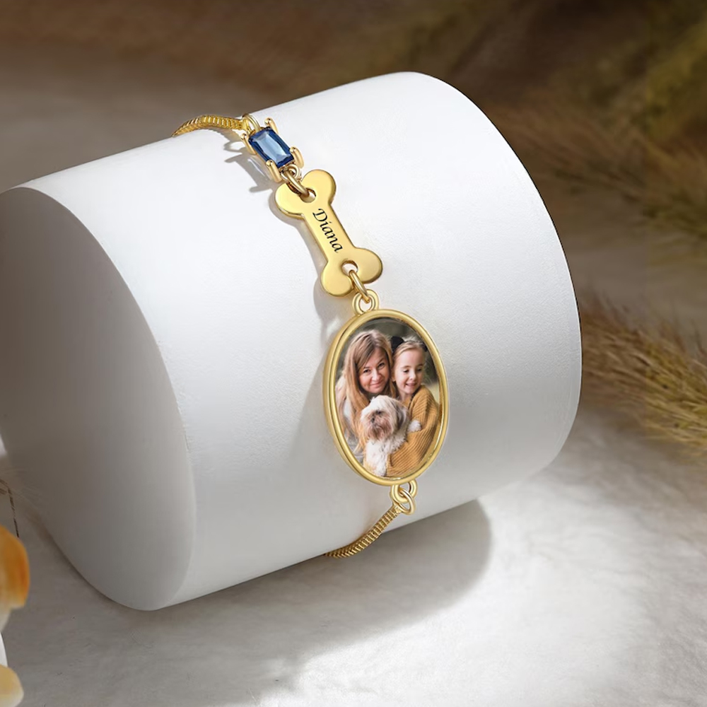 | Estilo | Pulsera personalizada con foto de mascota y piedra de nacimiento con nombre grabado |