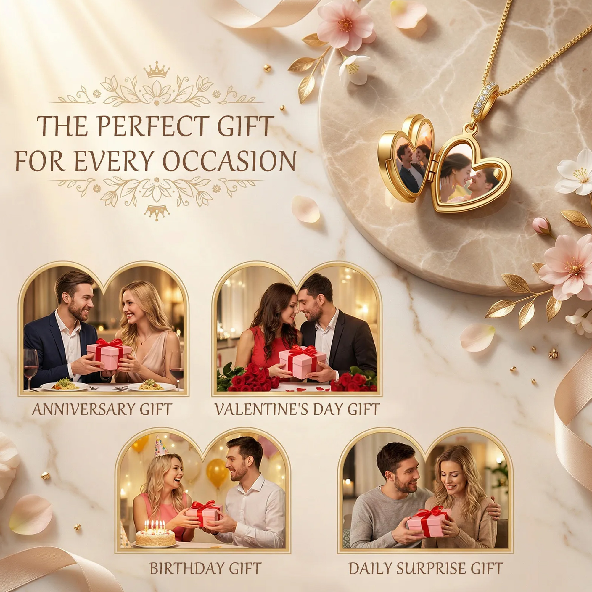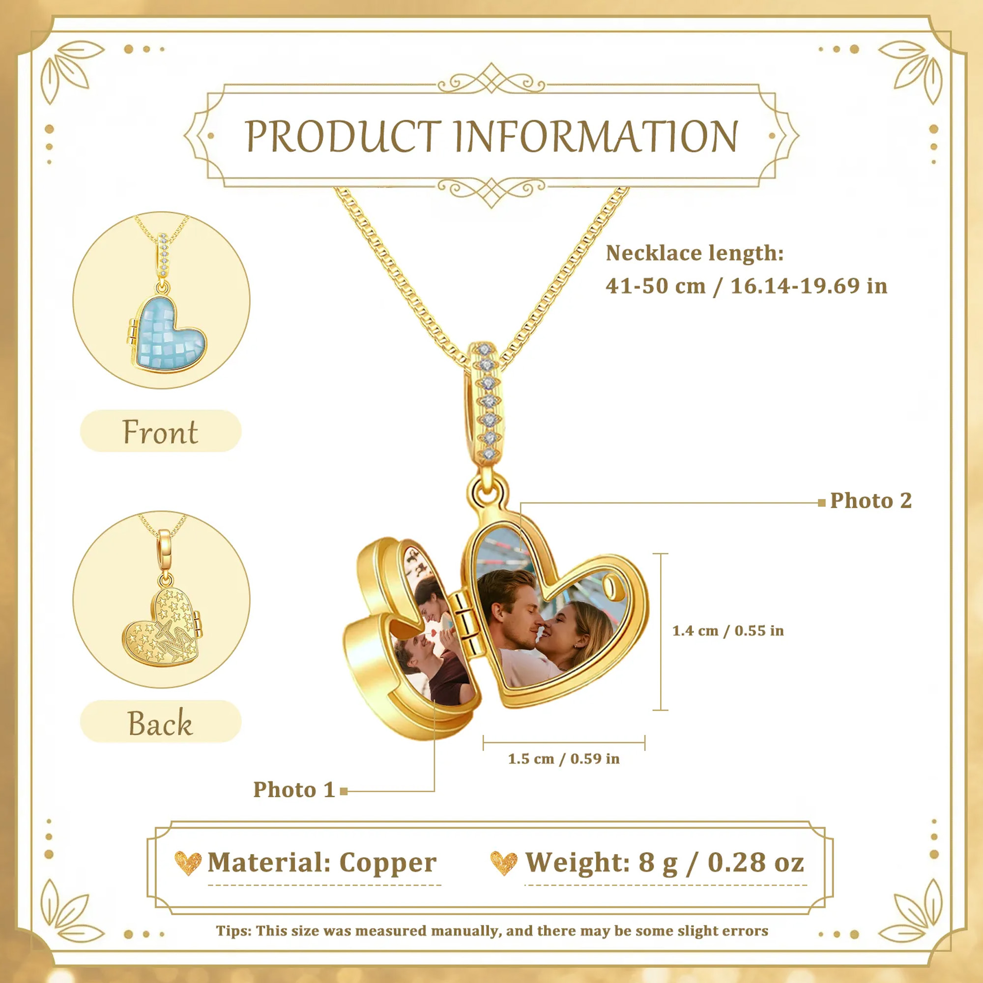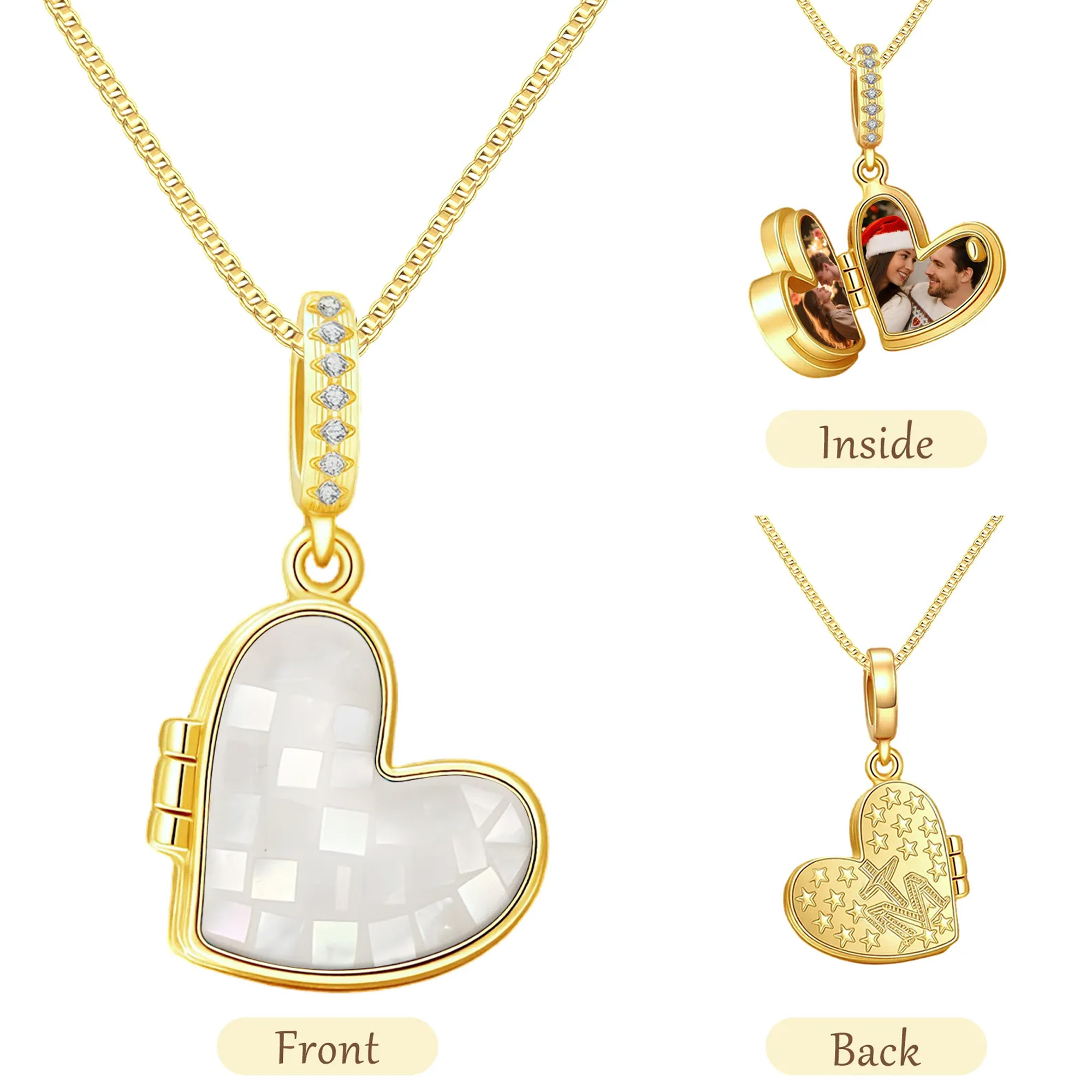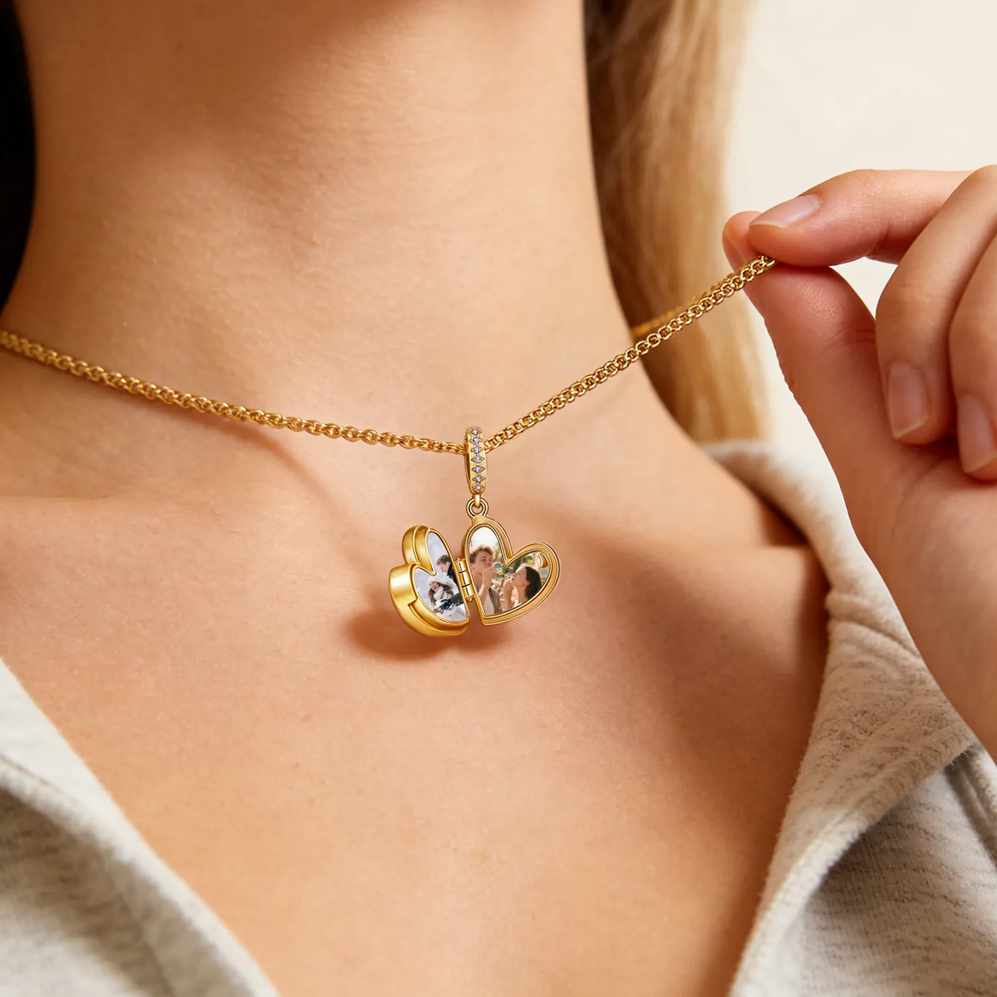 Personalízalo con una foto insertada : añade dos fotos significativas dentro del medallón, ya sea un recuerdo de pareja, familiar o de tu mascota. El diseño mantiene el amor cerca y en privado.