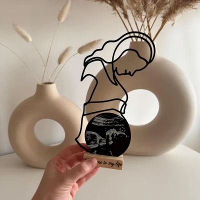 Inserto de ecografía personalizado : En el centro de la silueta hay un recorte circular diseñado para guardar tu ecografía personal, convirtiéndola en un recuerdo verdaderamente único. Simplemente coloca la primera foto de tu bebé en el marco para crear un conmovedor homenaje al comienzo de tu camino como padre.