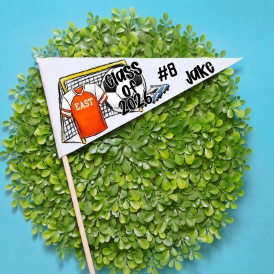| Estilo | Banderín personalizado de graduación de fútbol/béisbol/golf con nombre y número |