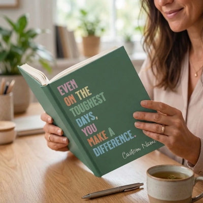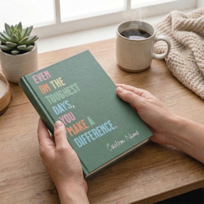 Personalizado con nombre : añade un nombre personalizado en una elegante caligrafía en la parte inferior. Se convierte en algo más que un simple diario: es un recordatorio diario de su valía e impacto, diseñado especialmente para esa persona.