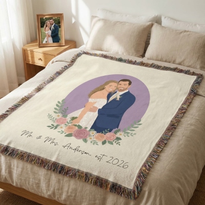 | Estilo | Manta floral personalizada con retrato familiar en acuarela y borlas |